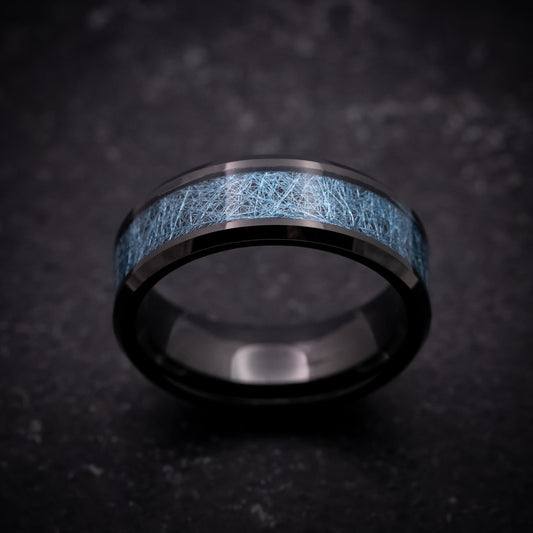 Black Tungsten Ring with Black and Gold Galaxy Inlay