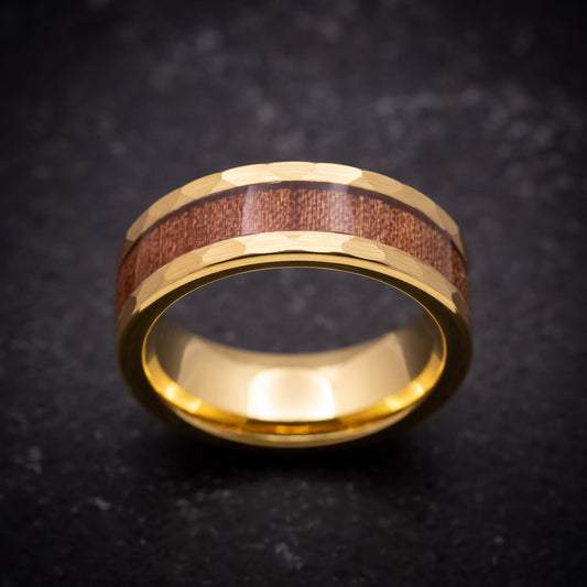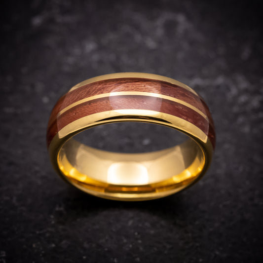 Yellow Gold Tungsten Ring with Hawaiian Koa Wood Inlays