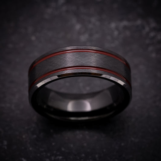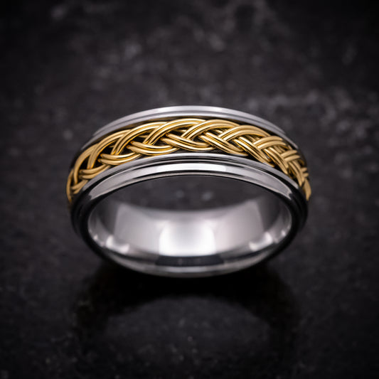 Tungsten Ring with Rose Gold Edges and Sleeve