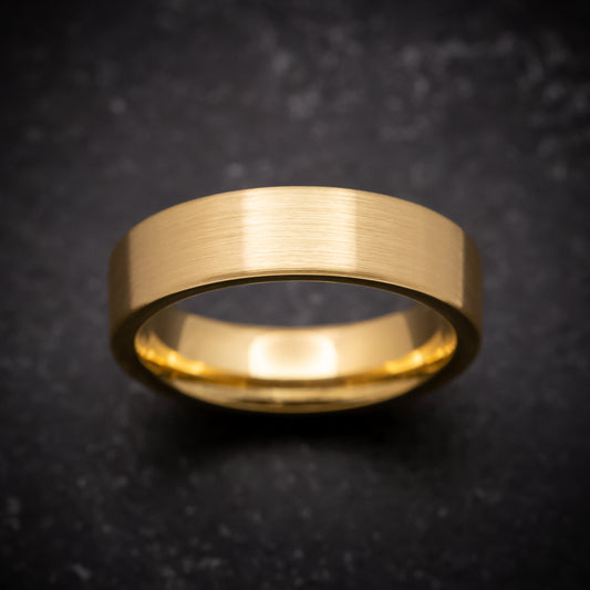 Yellow Gold Tungsten Ring with Hawaiian Koa Wood Inlay