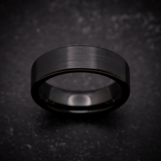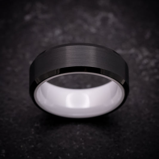 Black Tungsten Faceted Ring with Rose Gold Inlay and Sleeve