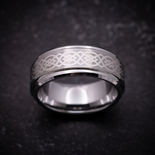 Tungsten and Black Tungsten Geometric Pattern Ring
