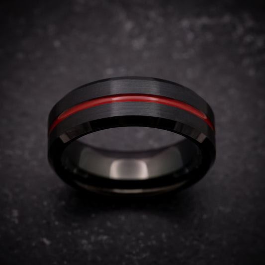 Black Tungsten Ring with Red Line Inlay