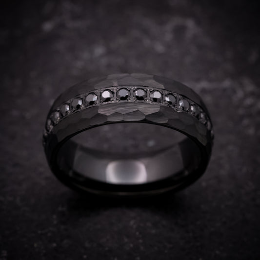 Black Tungsten Ring with Black Stones