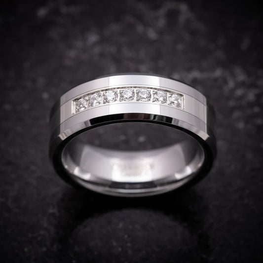 Tungsten Ring with White Stones