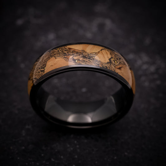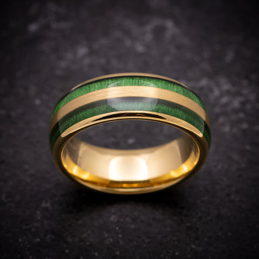 Yellow Gold Tungsten Ring with Jade Wood Inlays