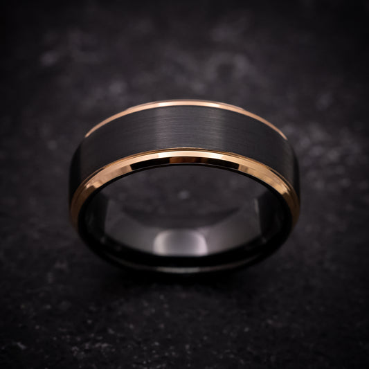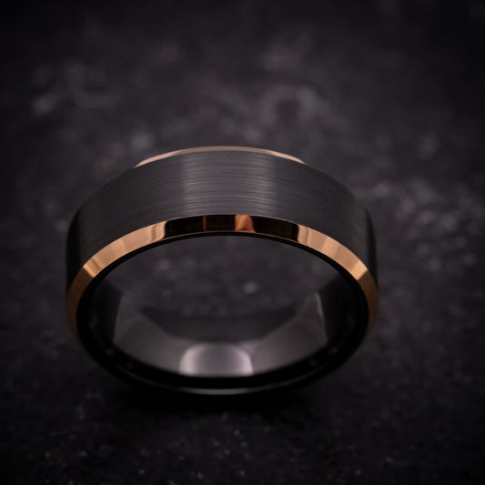 Tungsten Ring with Rose Gold Edges and Sleeve