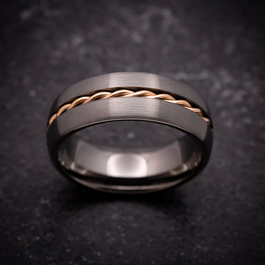Gun Metal Tungsten Ring with Rose Gold Rope Inlay