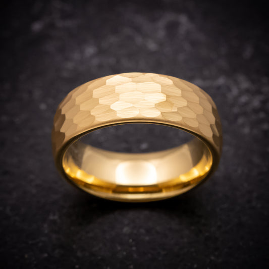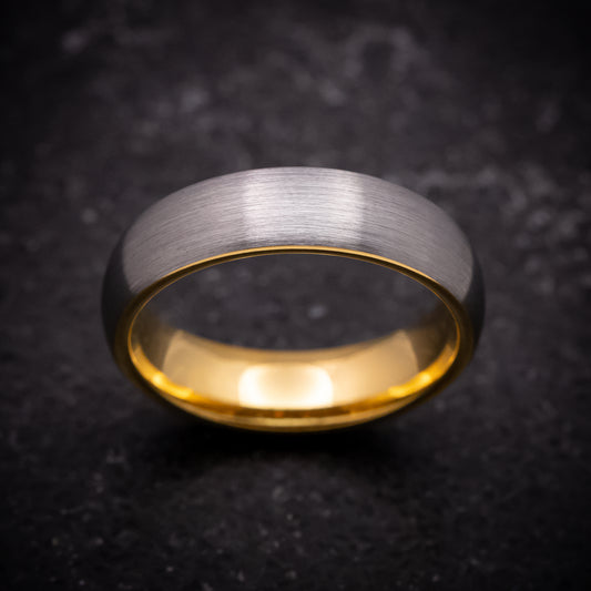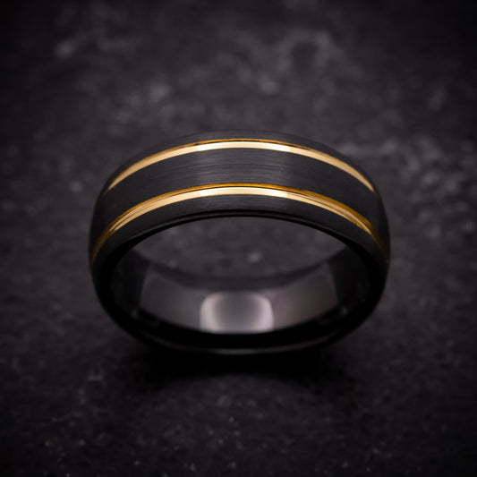 Yellow Gold Tungsten Ring with Red Spark Inlay