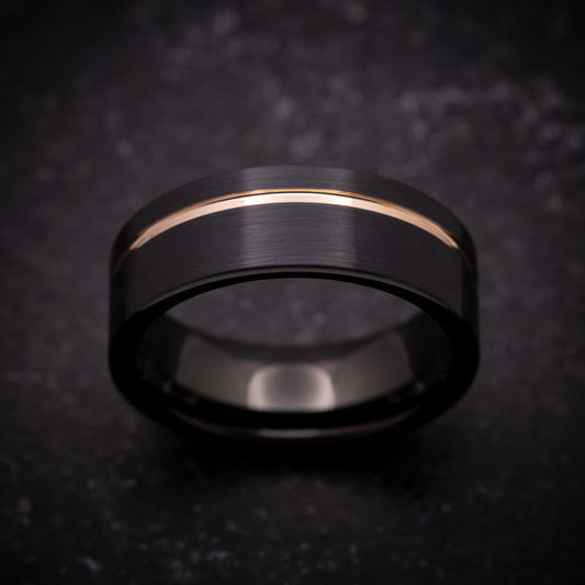 Rose Gold Tungsten Ring with Carbon Fiber Inlay