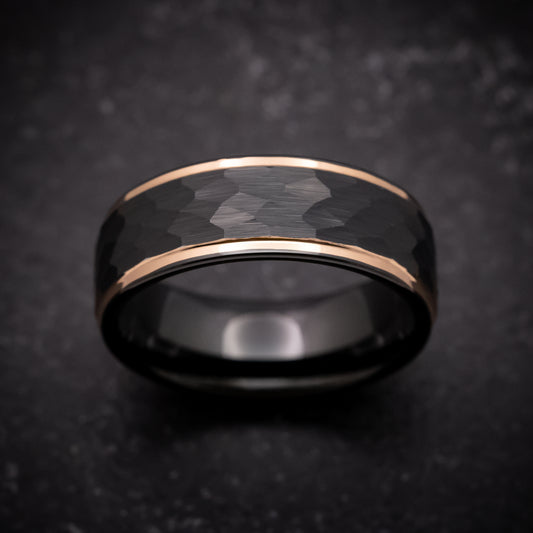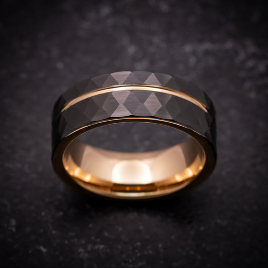 Black Tungsten Faceted Ring with Rose Gold Inlay and Sleeve
