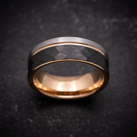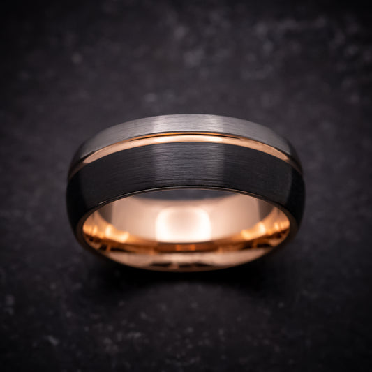 Rose Gold and Black Tungsten Tri-Tone Ring