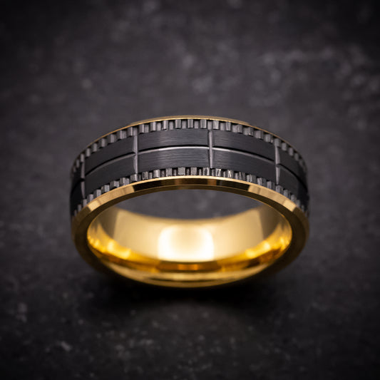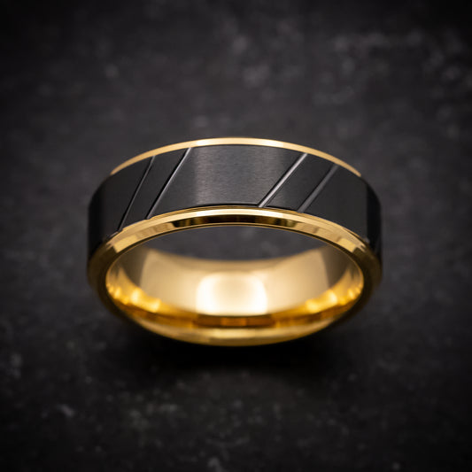 Yellow Gold Tungsten Ring with Black Tungsten Inlay