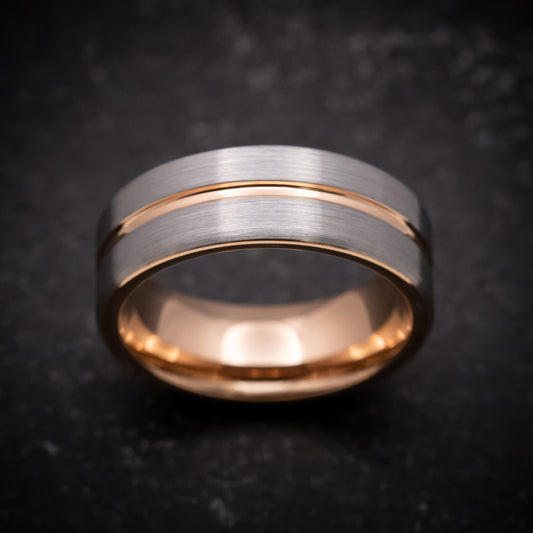 Tungsten Ring with Rose Gold Inlay and Sleeve
