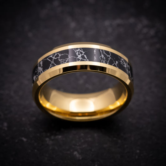Yellow Gold Tungsten Ring with Black Turquoise Inlay