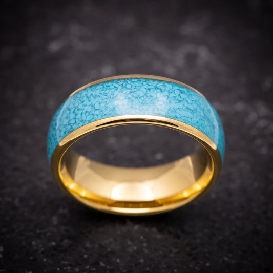 Yellow Gold Tungsten Ring with Turquoise Inlay