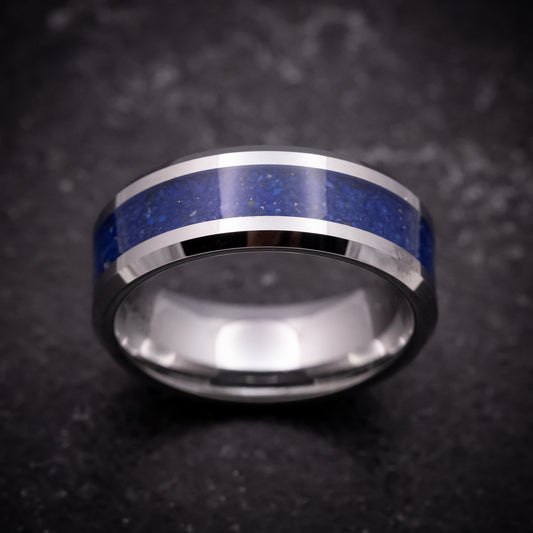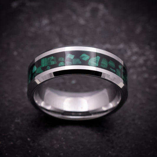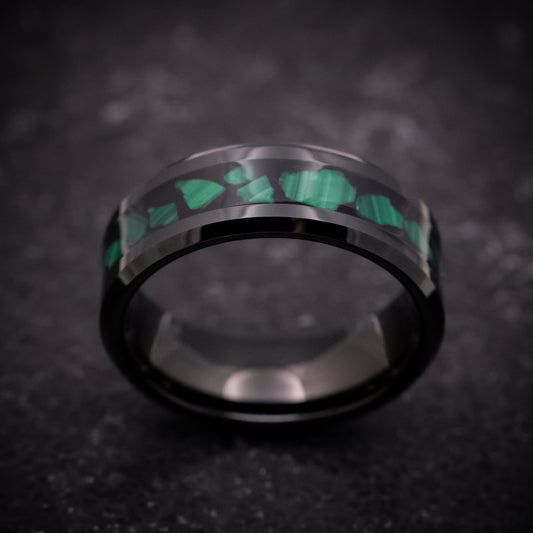 Black Tungsten Ring with Titanium Shavings and Opal Inlays