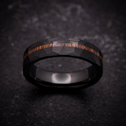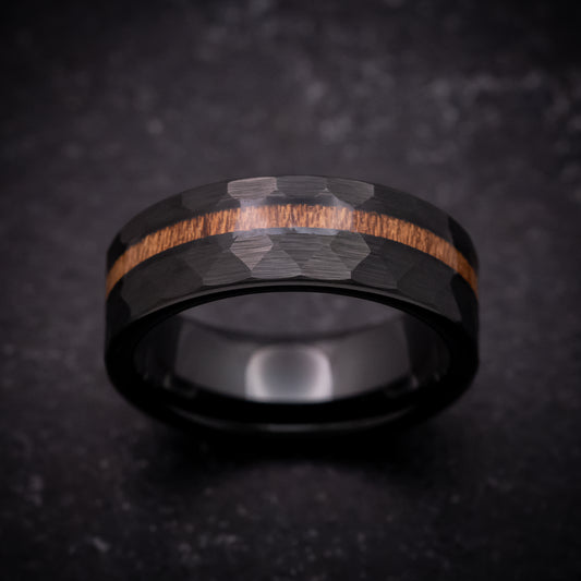 Black Tungsten Ring with Hawaiian Koa Wood Inlay